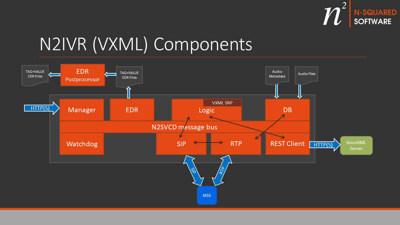 The sub-component labelled “IVR” is the n2ivr_vxml.lua script which defines the service logic.