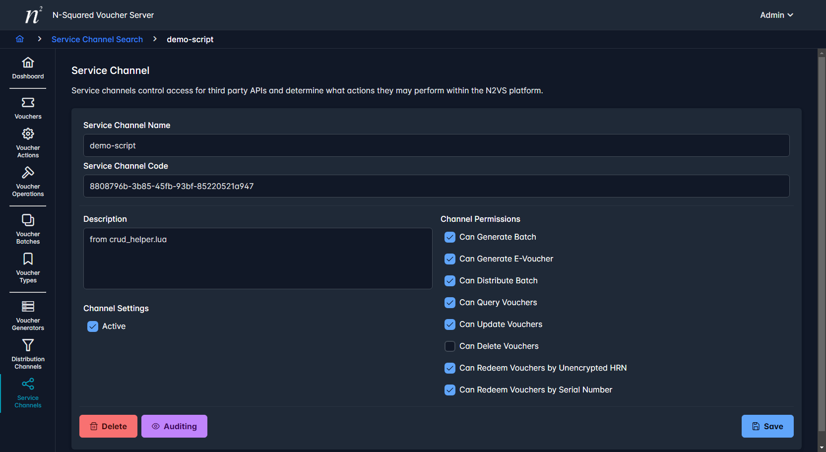 | Can Redeem Vouchers by Serial Number | Whether Vouchers can be redeemed via their serial number by this Service Channel. |