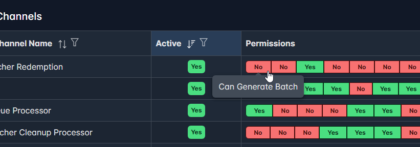 | Can Generate Batch | Whether Voucher Batches can be generated by this Service Channel. |