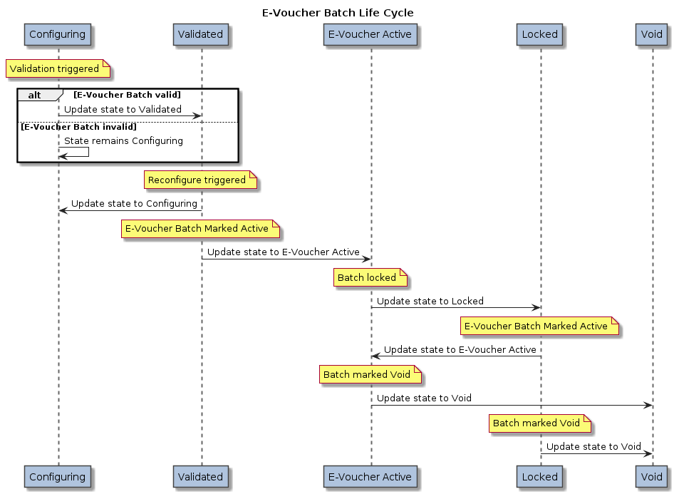 E-Voucher Batches have various states that are transitioned through as they are configured.