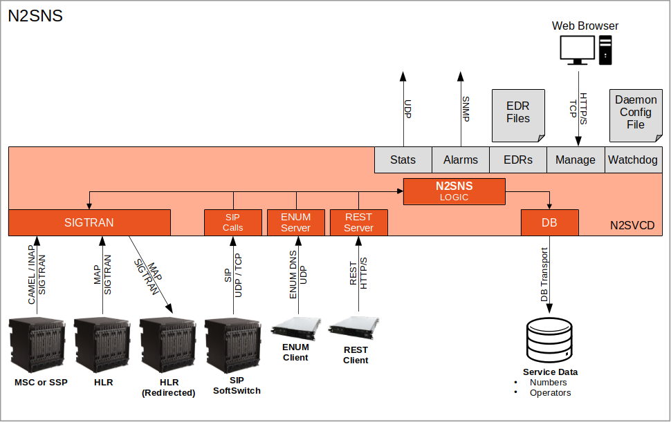 N2SNS has Administration GUIs for number management and operator configuration. A REST API is provided for automated provisioning from an external master source.